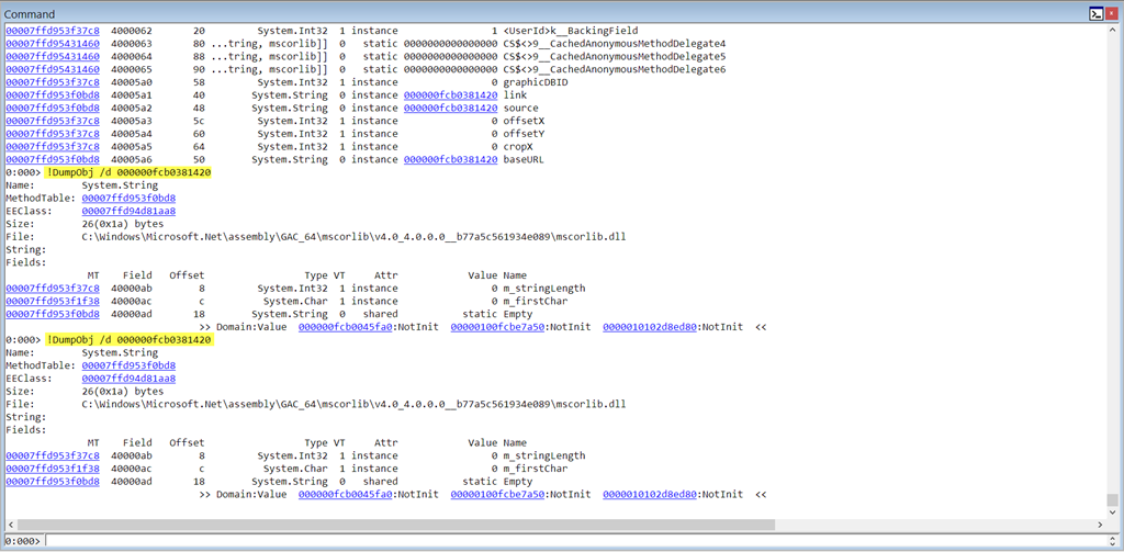Práci s WinDBG/SOS lze zpříjemnit malým trikem. Pokud za název příkazu (většina to podporuje) připojíte přepínač /d, bude výstup klikatelný (spustí příkaz, který odpovídá prozkoumání daného cíle dle jeho typu):